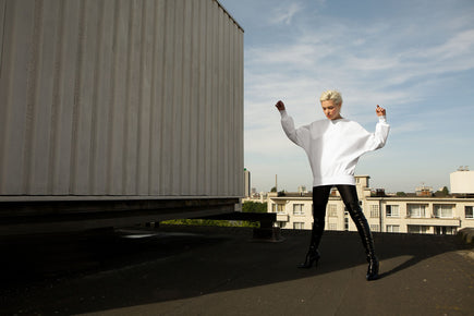wide-sleeve long jumper made from wood pulp | off-white