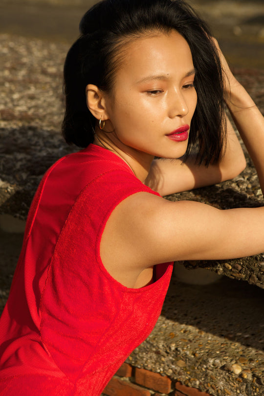 velours bodysuit made from recycled fibres | rebellious red