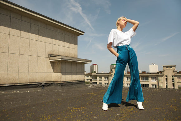 velours flared trousers made from recycled fibres | bright blue
